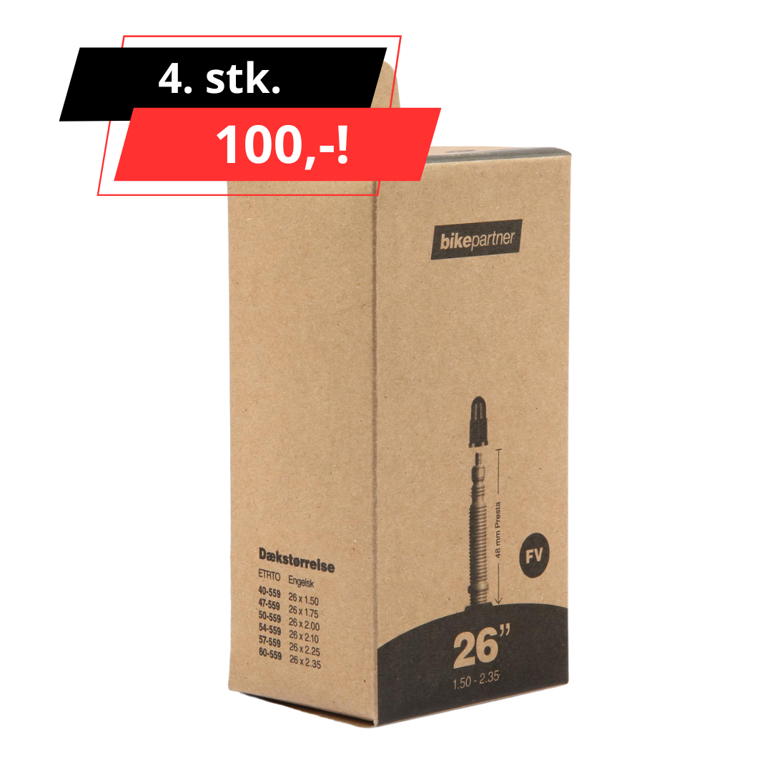 Denne cykelslange fra BikePartner er udviklet til 26” hjul og passer til dækbredder fra 1,50” til 2,35” (ETRTO 40/60-559). Den er ideel til både mountainbikes og citybikes, hvor du har brug for en robust og alsidig slange, der kan klare alt fra asfalt til ujævne stier.