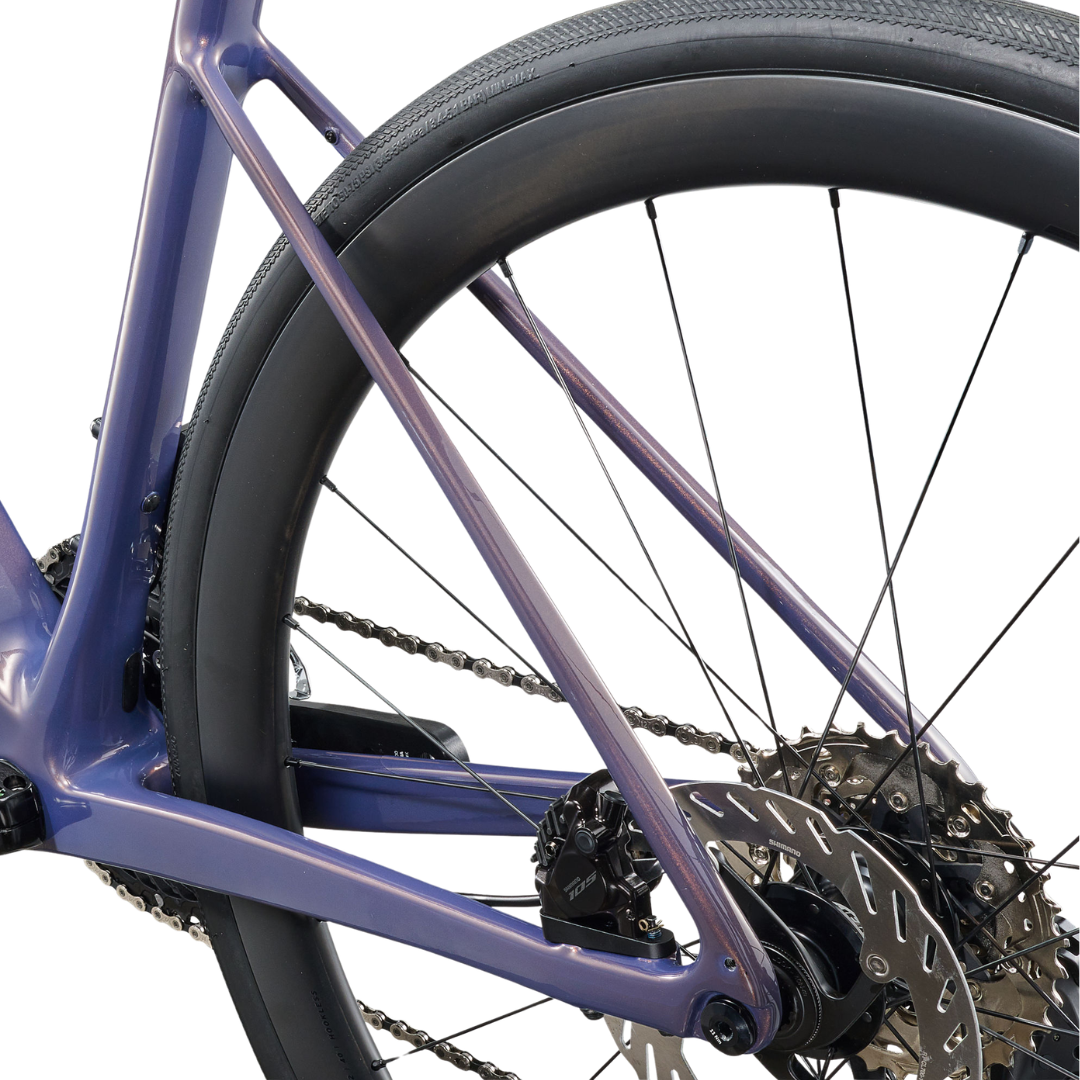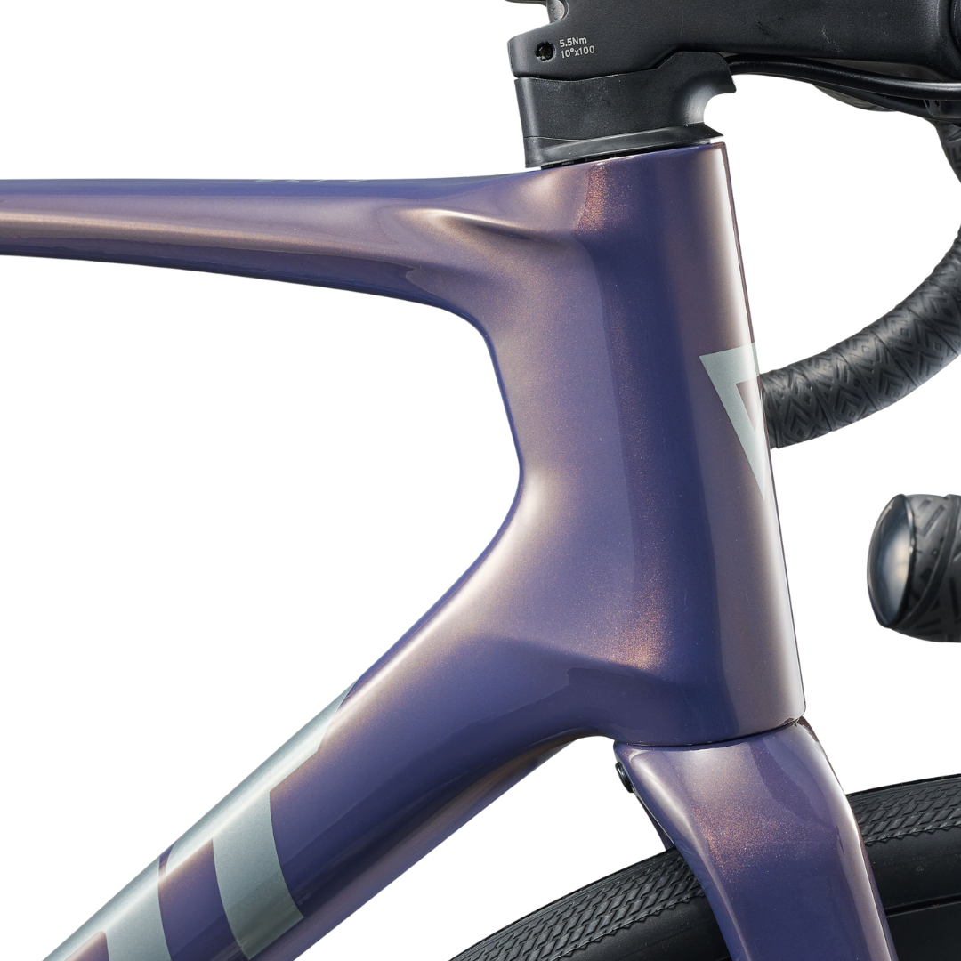 Komfort hele dagen: Rammens advanced-kvalitets carbon og specialdesignede komponenter arbejder sammen for at reducere vibrationer og give dig en jævn, responsiv tur – perfekt til lange dage i sadlen.
