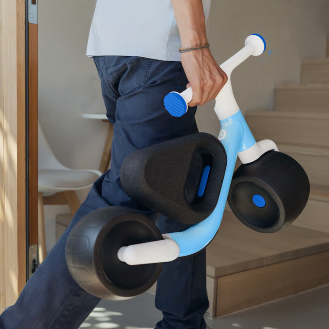 Med en vægt på kun 2,7 kg er woom WOW en af de letteste løbecykler på markedet. Det gør det nemt for både børn og voksne at håndtere den. Den kan hurtigt bæres op ad trapper, med i bilen eller tages under armen på gåturen. Samtidig er stellets udformning optimeret til små børns proportioner, hvilket giver en naturlig og komfortabel kørestilling.