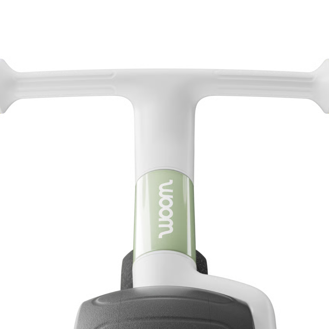 I modsætning til klassiske løbecykler har woom WOW et selvcentrerende styr, der automatisk finder tilbage til midterpositionen. Det betyder, at barnet kan fokusere på at finde balancen uden samtidig at skulle lære at styre. Det giver en mere intuitiv og tryg oplevelse – især for de mindste, der stadig er i gang med at udvikle grundlæggende motoriske færdigheder.